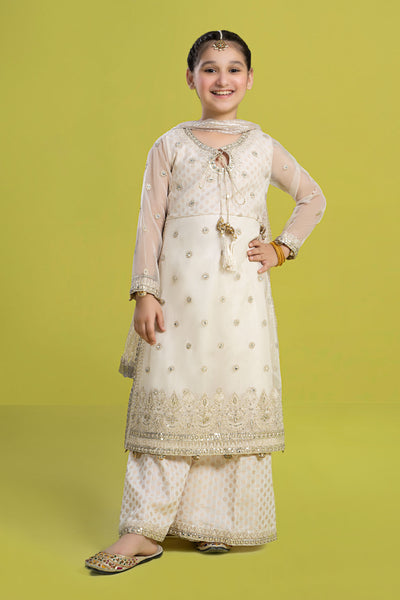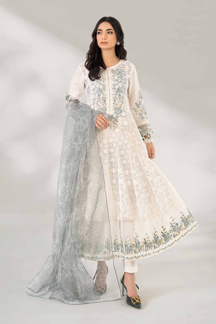 3 Piece Embroidered Organza Suit  MKS2425-023-OWH