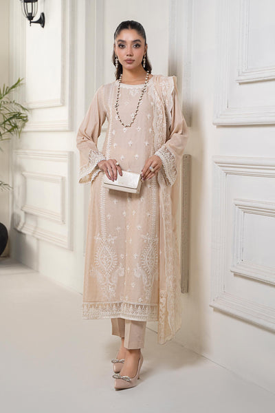 3 Piece Embroidered Self Jacquard Suit  DWEF109-ESM-BEG
