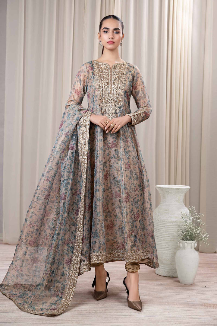 3 Piece Printed Organza Masoori Net Suit  DWEF265-ESM-BEG