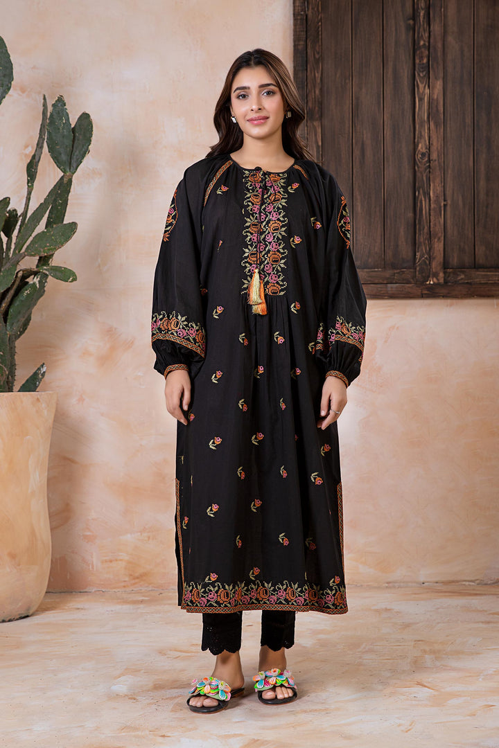 Embroidered Arabic Lawn Tunic  MBA2441-ESM-BLK