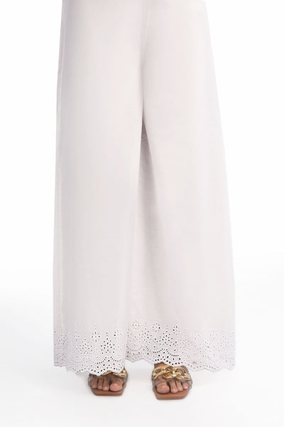 Embroidered Cambric Trouser | MB-EF23-84  MBEF084-EXS-WHT