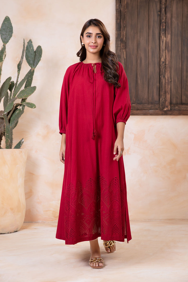 Embroidered Dobby Lawn Tunic  MBA2447-ESM-RED