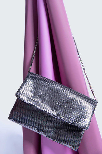 Crafted with sequin mesh and accented with a silver-tone chain strap, this compact yet trendy mini bag is perfect to hold all your essentials.