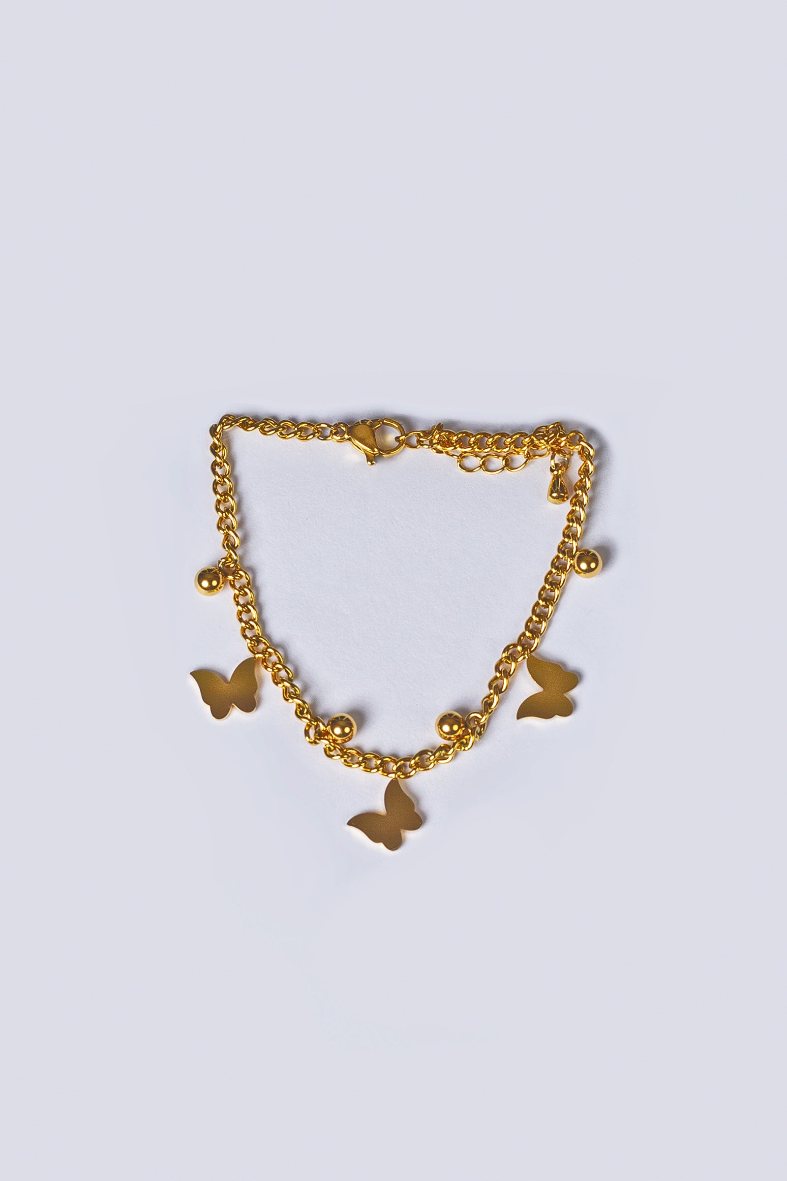 Wrap sophistication around your wrist with this old-tone necklace, featuring butterfly ball embellishments in a braided chain to instantly elevate your style. Color: Gold Material: Metal