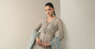 Printed Embroidered Sleeves With Luxury Hand Embellishment & Border