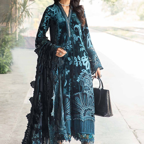 ShirtDyed ShirtEmbroidered Organza Neck Patti With Stickon StudsEmbroidered Velvet Applique Ghera PatchEmbroidered Velvet Ghera PattiEmbroidered Velvet Applique Sleeves PattiColor: TealFabric: PalachiTrousersDyed TrouserColor: TealFabric: LinenDupattaDyed DupattaEmbroidered Velvet Dupatta PattiColor: TealFabric: PalachiNote: Dry Clean Only