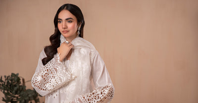 Cutwork Embroidered Full Length Sleeves With Pearl Drop