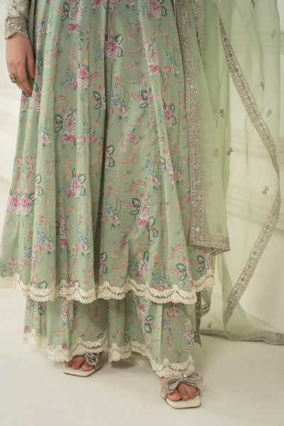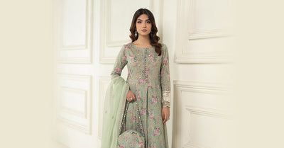 Sequins, Tilal & Thread Embroidery On Sleeves & Border