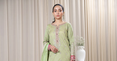 Tilla Embroidered Full Straight Sleeves With Tilla Balls Detailing On Borders