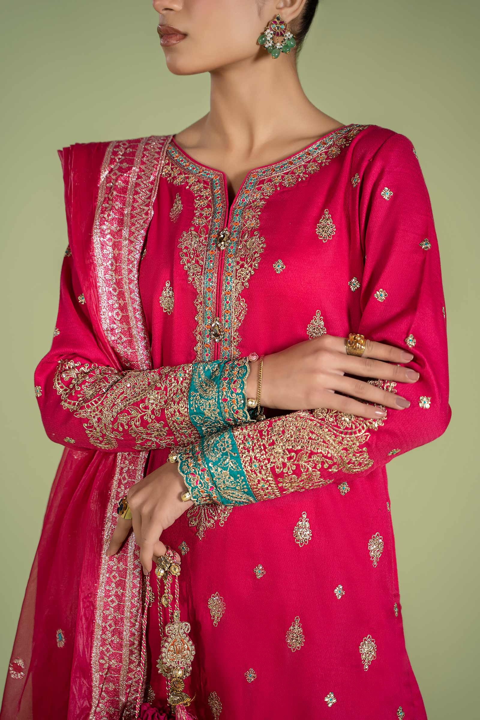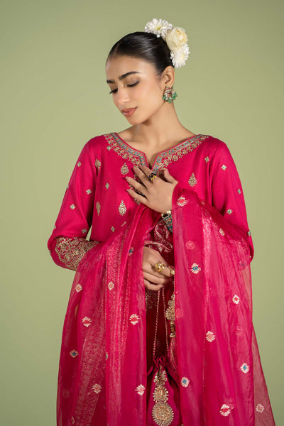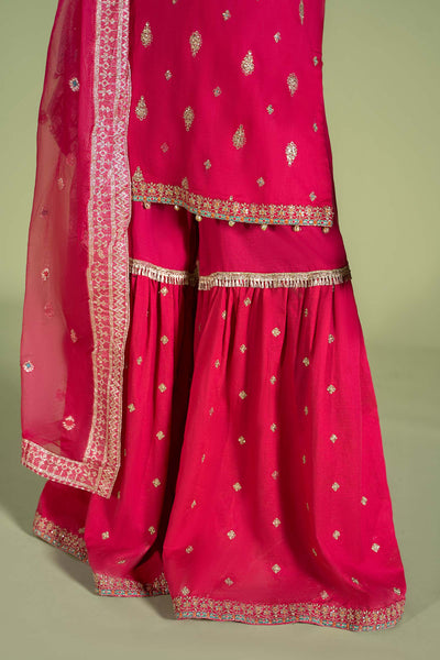 Dyed Gharara With Tilla Embroidery & Kiran Lace Detailing