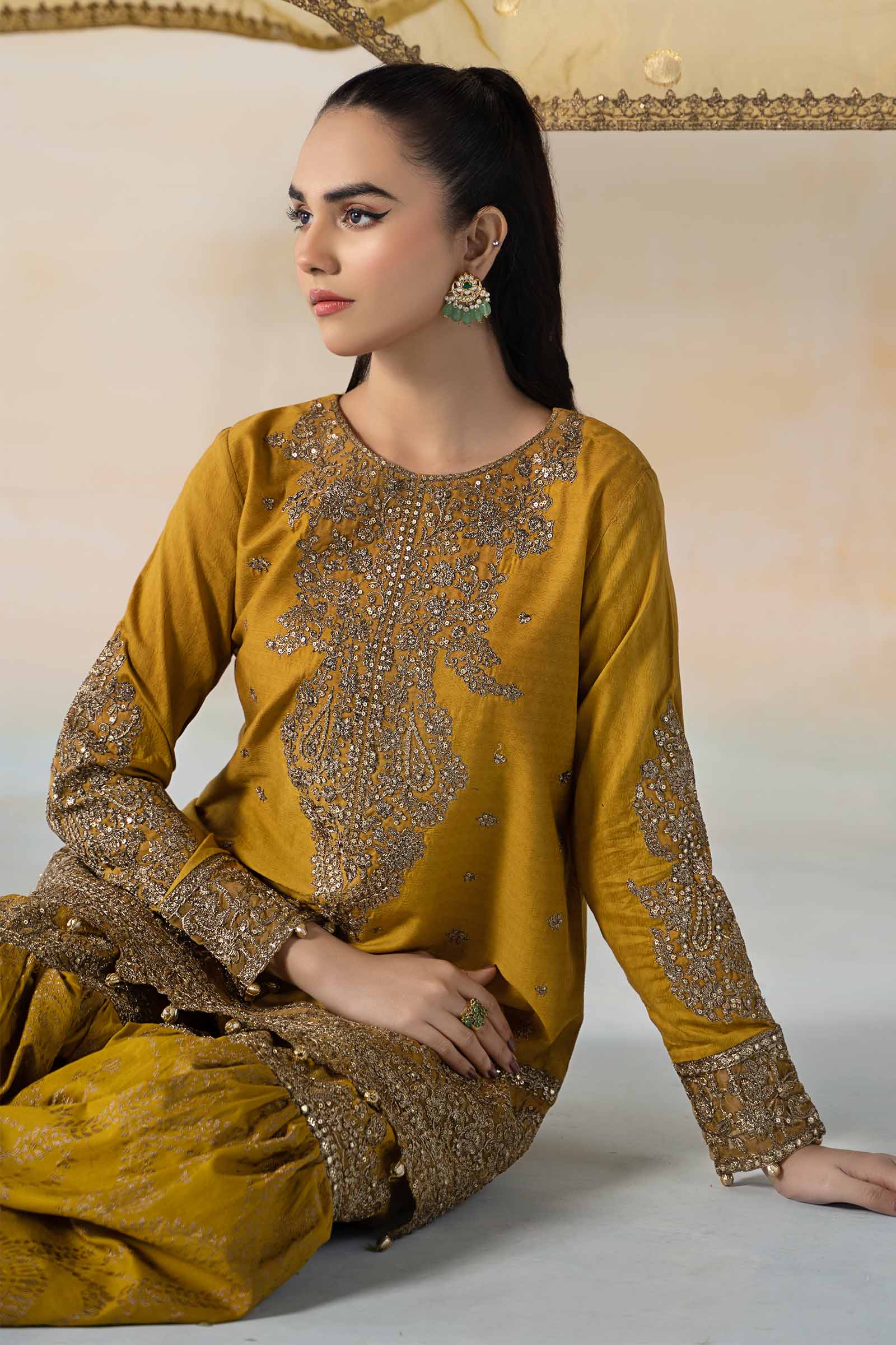Embroidered Patti & Gotta Balls Detailing On Sleeves Border