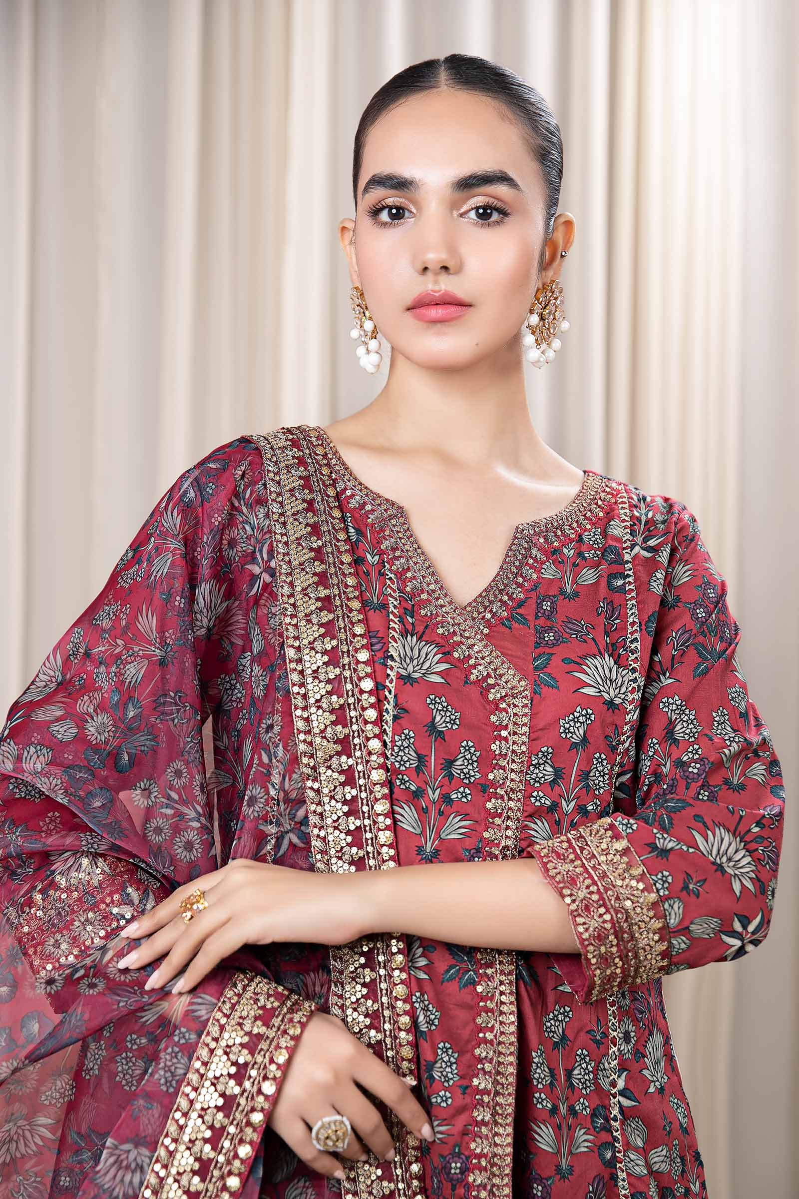 ShirtPrinted Front Open AgrakhaRound Neckline With V CutSequins & Tilla Embroidery On NecklineThread Detailing On PanelsSequins & Tilla Embroidered Patti On BorderThree-Quarter Straight Sleeves With Embroidered Patti On BorderColour: RedFabric: LawnTrousersDyed Straight Fit TrousersColour: RedFabric: CambricDupatta Printed Dupatta With Tilla & Sequins Embroidered BorderColour: RedFabric: Poly OrganzaModel is wearing size xsNote: Only Dry Clean