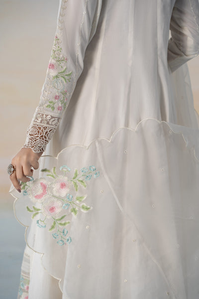 Full Straight Sleeves With Embroidery & Lace Detailing On Borders