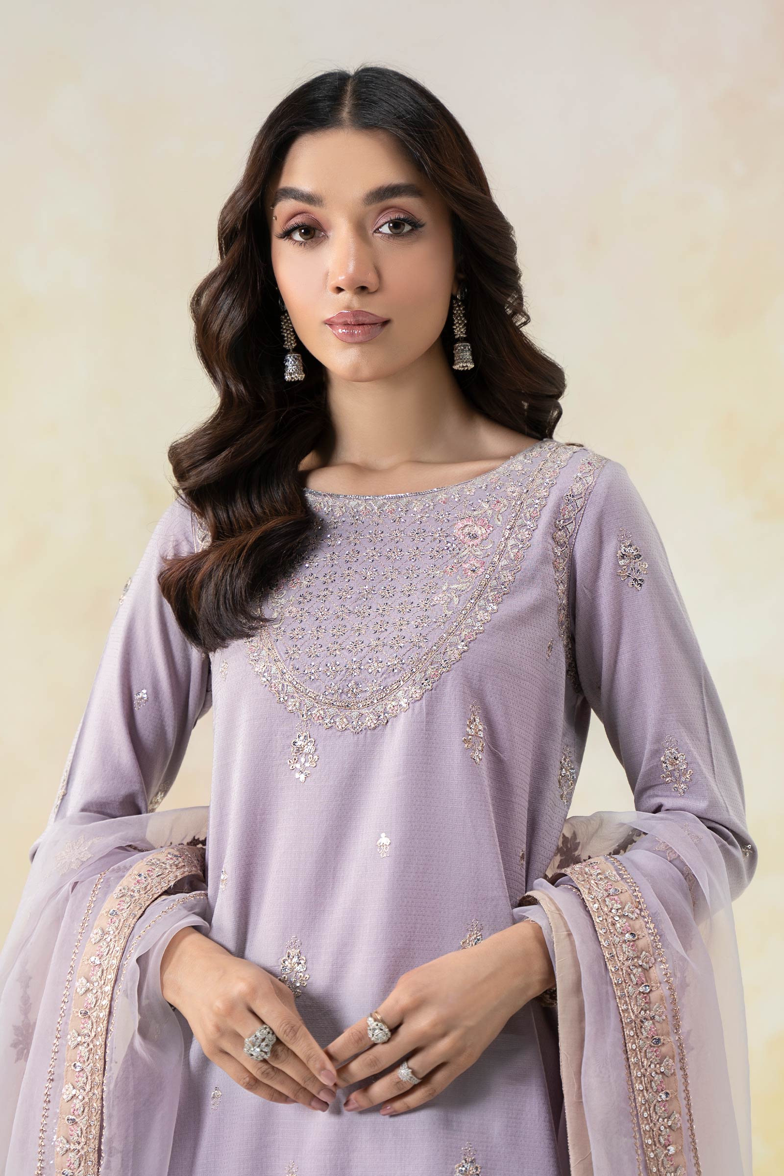 Spray Embroidered Sleeves With Organza Embroidered Border