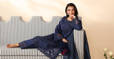 Full-Length Sleeves With Lace Detailing & Organza Embroidered Border