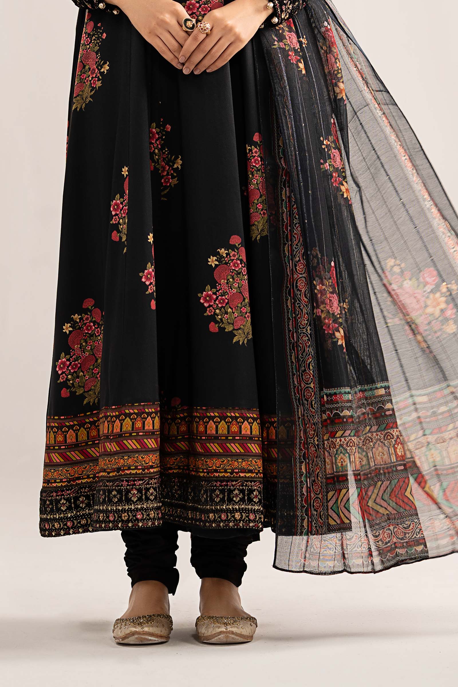 Digital Printed Sleeves With Velvet Embroidered Border & Gotta Balls Drop Detailing