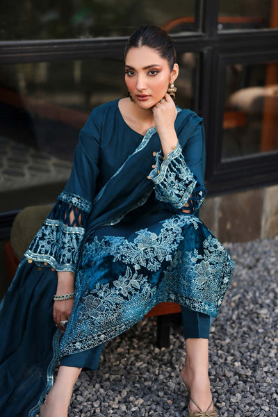 Dyed Sleeves With Velvet Loops Detailing & Embroidered Border