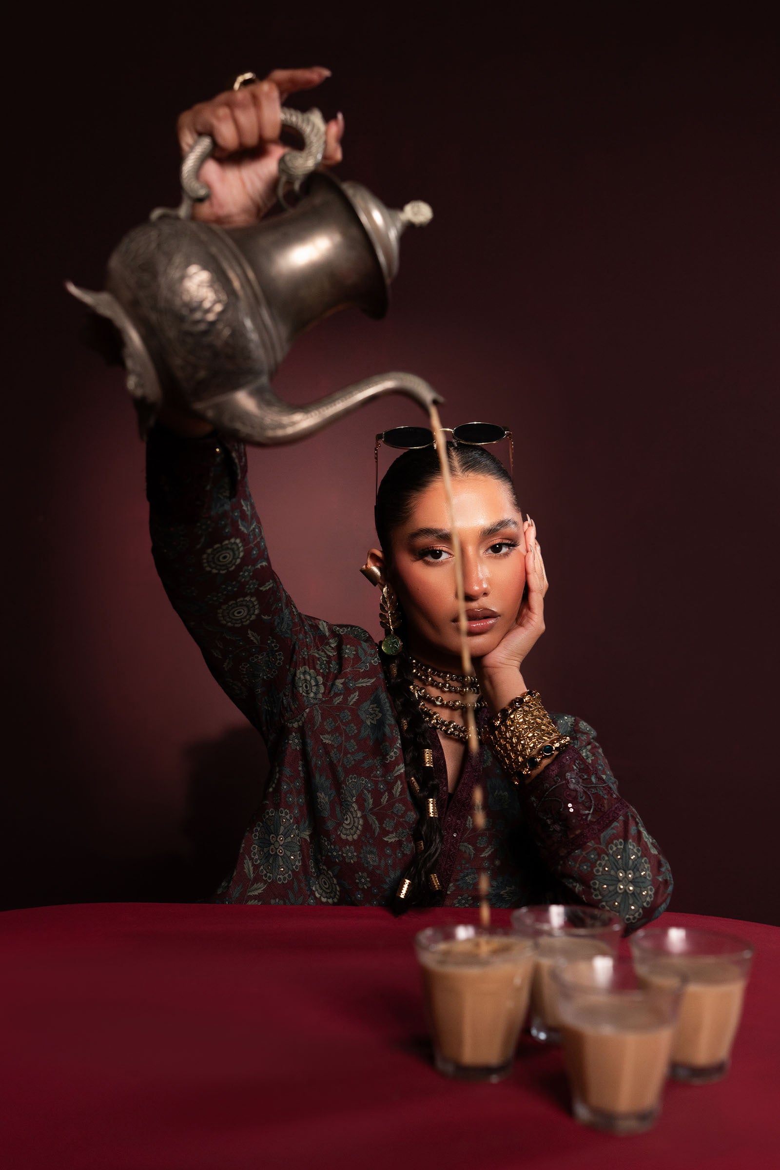 JacketPrinted Embroidered Front-Open Jacket With Diamantes EmbellishmentPrinted Straight Sleeves With Stickon Embellishment & Embroidered BorderFull Jacket Linen Lining (Attached)Color: MaroonFabric: Pk Raw SilkUndershirtSleeveless UndershirtRound NecklineColor: MaroonFabric: LinenSkirt Printed SkirtHook Closure WaistbandColor: MaroonFabric: Pk Raw SilkModel is wearing xs sizeNote: Dry Clean Only