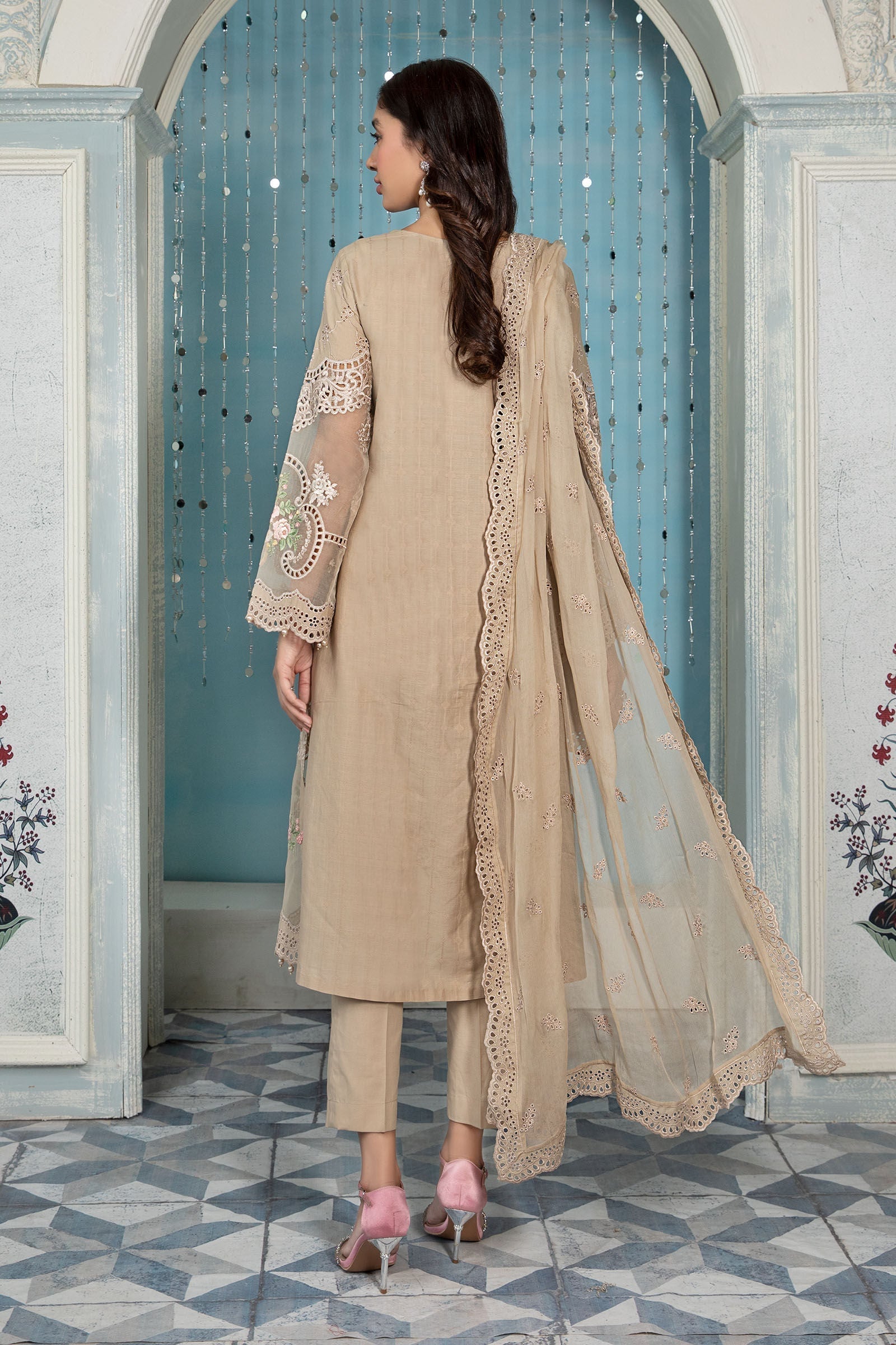Straight Embroidered Organza & Lawn ShirtEmbroidered Organza & Lawn SleevesEmbroidered Chiffon DupattaPlain Trouser