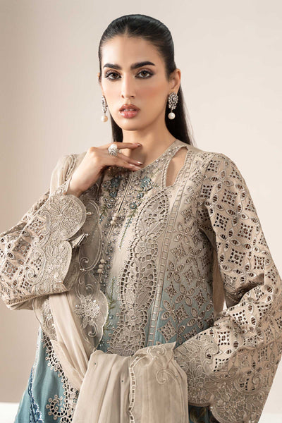 Printed Embroidered Round Neckline With Buttons, Cutouts, 3D Flowers & Pearls Detailing