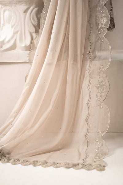 Embroidered Organza Border With Lace & Pearl Drops Detailing