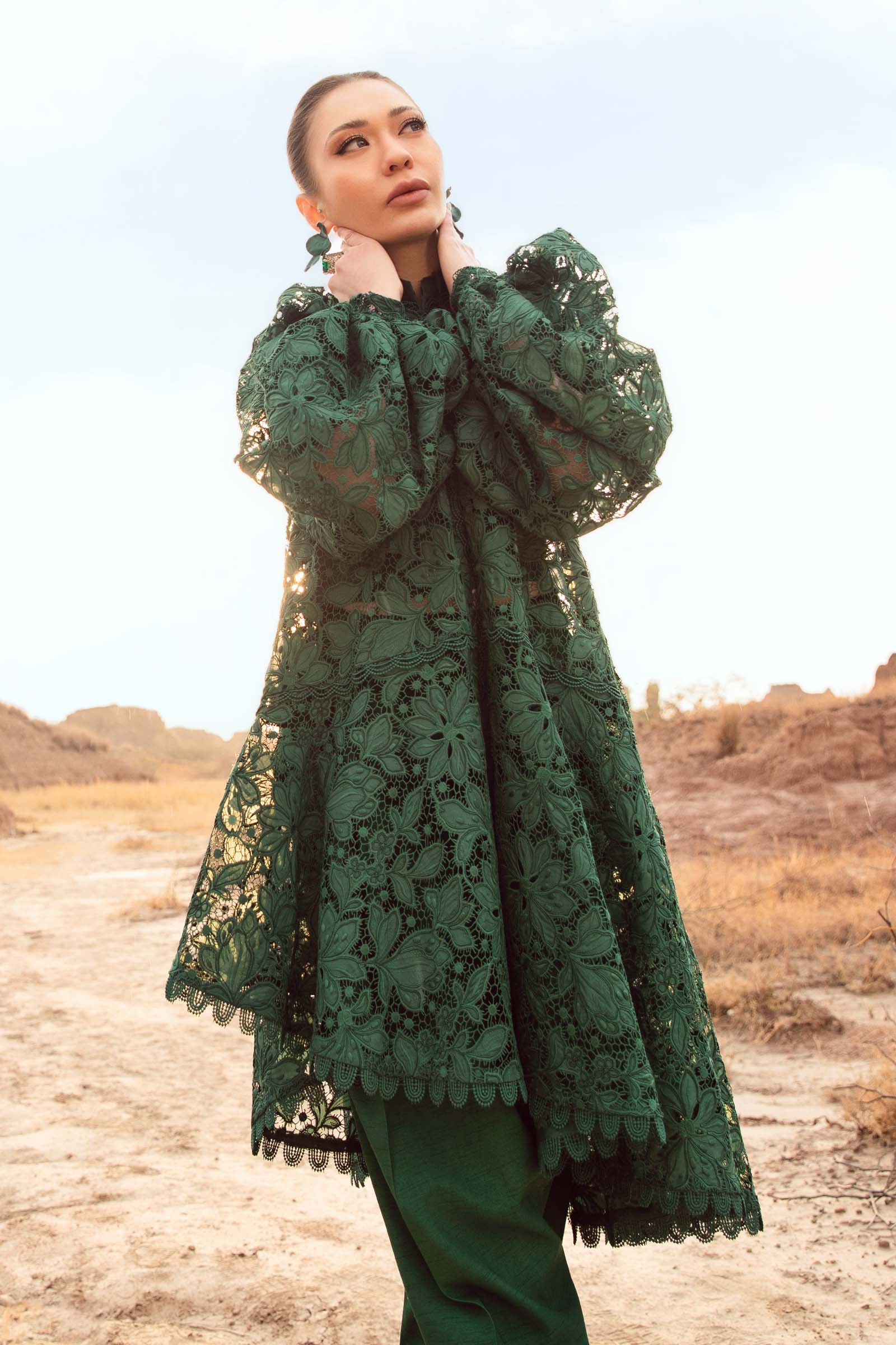 ShirtSchiffli Embroidery With Laser & Dori DetailsColor: GreenFabric: CottonNote: Dry Clean Only