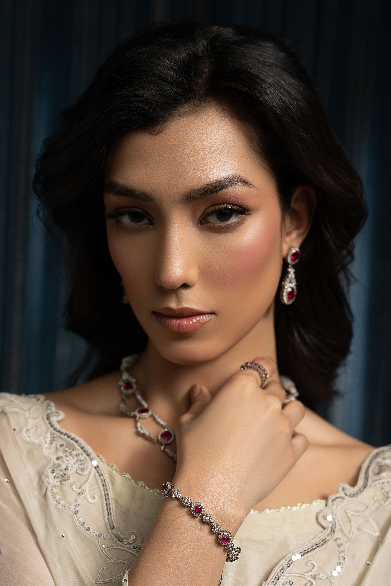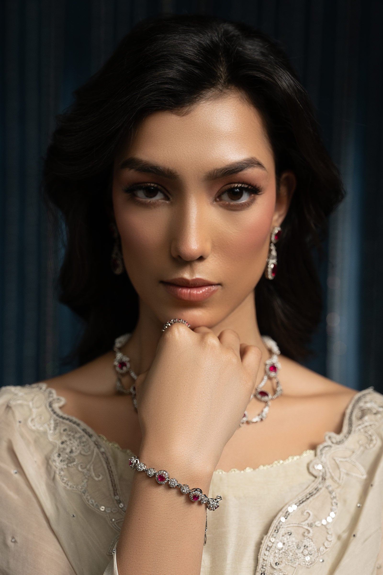 Strikingly modern, this bracelet shines with vibrant pink rhodolite and sparkling white zircons - an artistic fusion of edgy elegance, romantic charm, and timeless grandeur. Composition: Silver Lock: Box Lock Care Instructions: Wipe Clean