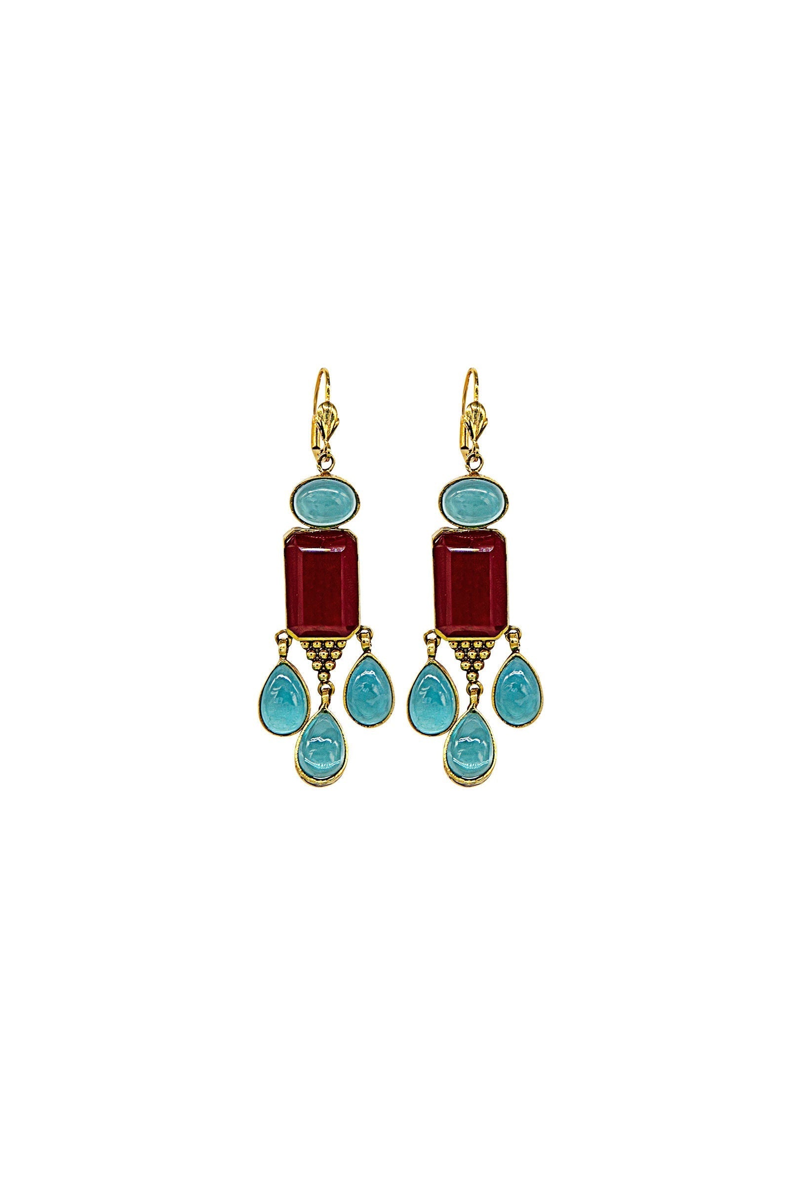 Pear shape cobalt color with statemental chaitam and granules motif give a sharp and elegant look.