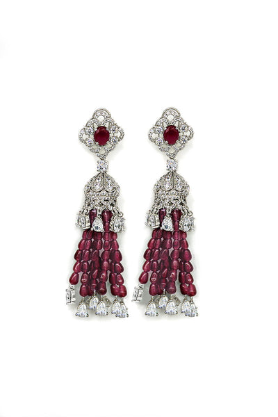 Livishly exaggerated high quality zircon setting for adorn the earring piroi of real beads in different colors with precision and perfection soberly crafted miniature size zircon chandelier with hanging rhodium plated petal to give delicate feel