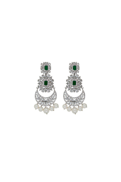 A stackable wonder, Rhodium plated chand baali handset studded zircon with shalper pearl, green gilson stone to give a stunning look
