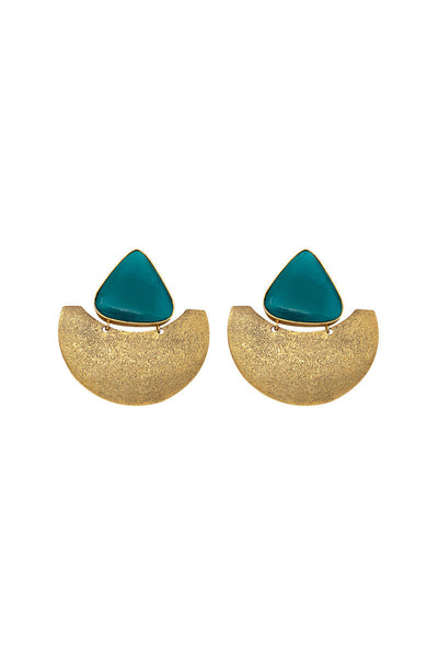 Blue tourmaline, black tourmalione handcut glass stone Shabnam texture 21K gold plated Stud back with sterling silver pin Alloy metal Made in Pakistan