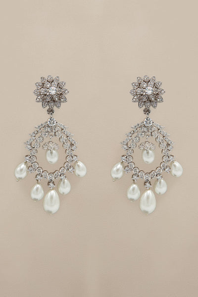 Rhodium plated earrings along with handset studded zircons and shalper pearls, to give a stunning look.
