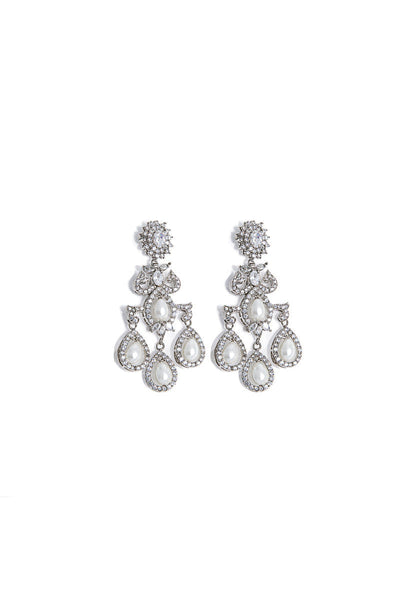 Let the beauty within you shine bright as you adorn these green, pearl and topaz chandelier earrings with white zircon setting. Available in three colors. sterling silver back pin with silver plated Alloy metal Made in pakistan