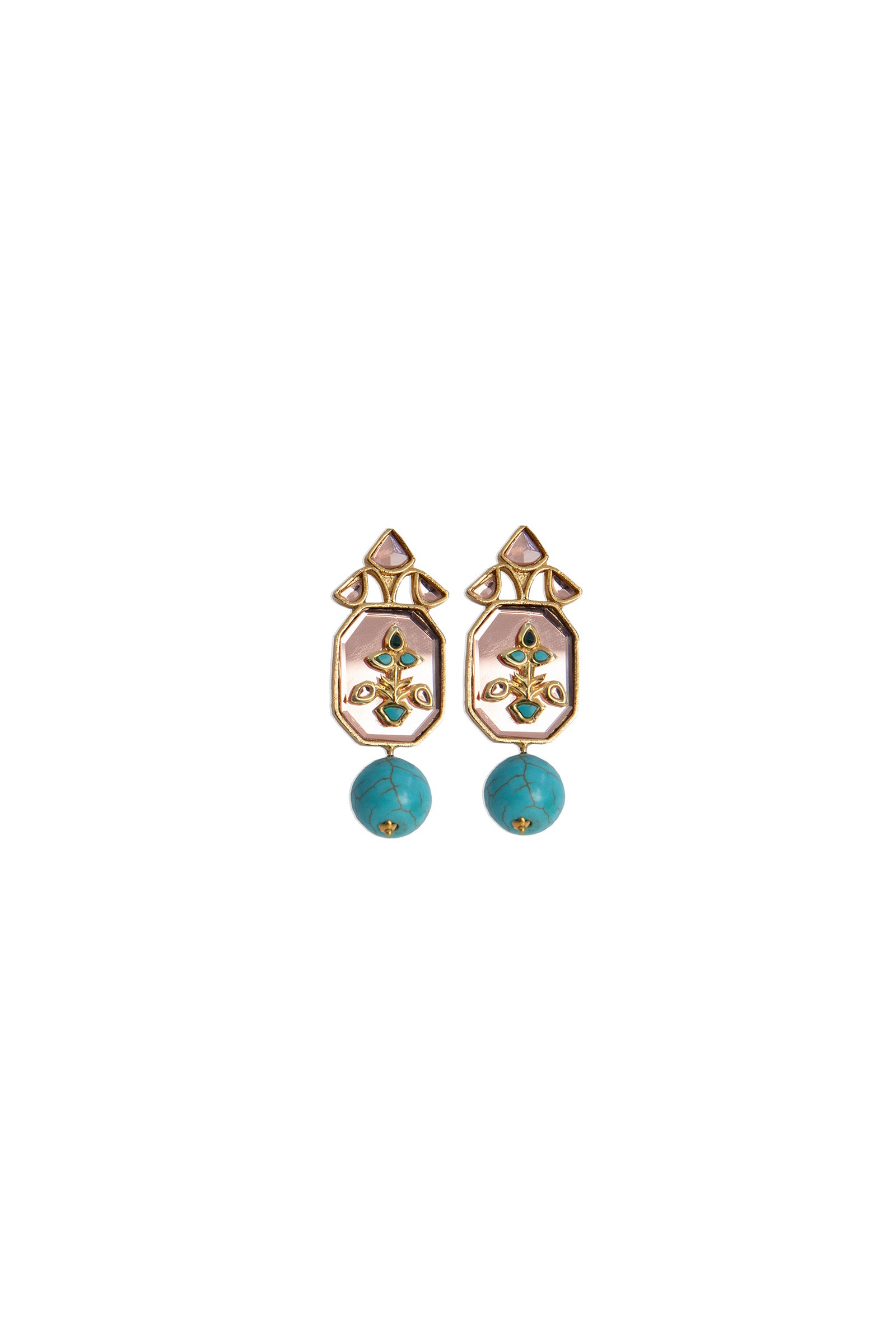 Materials: Turquoise, Onyx & Handcut Glass Color: Blue Turquoise, Green Onyx & Champagne Metal: Alloy Finish: 21k Gold Plated Back Pin: Sterling Silver Stud Product Care: Wipe Clean
