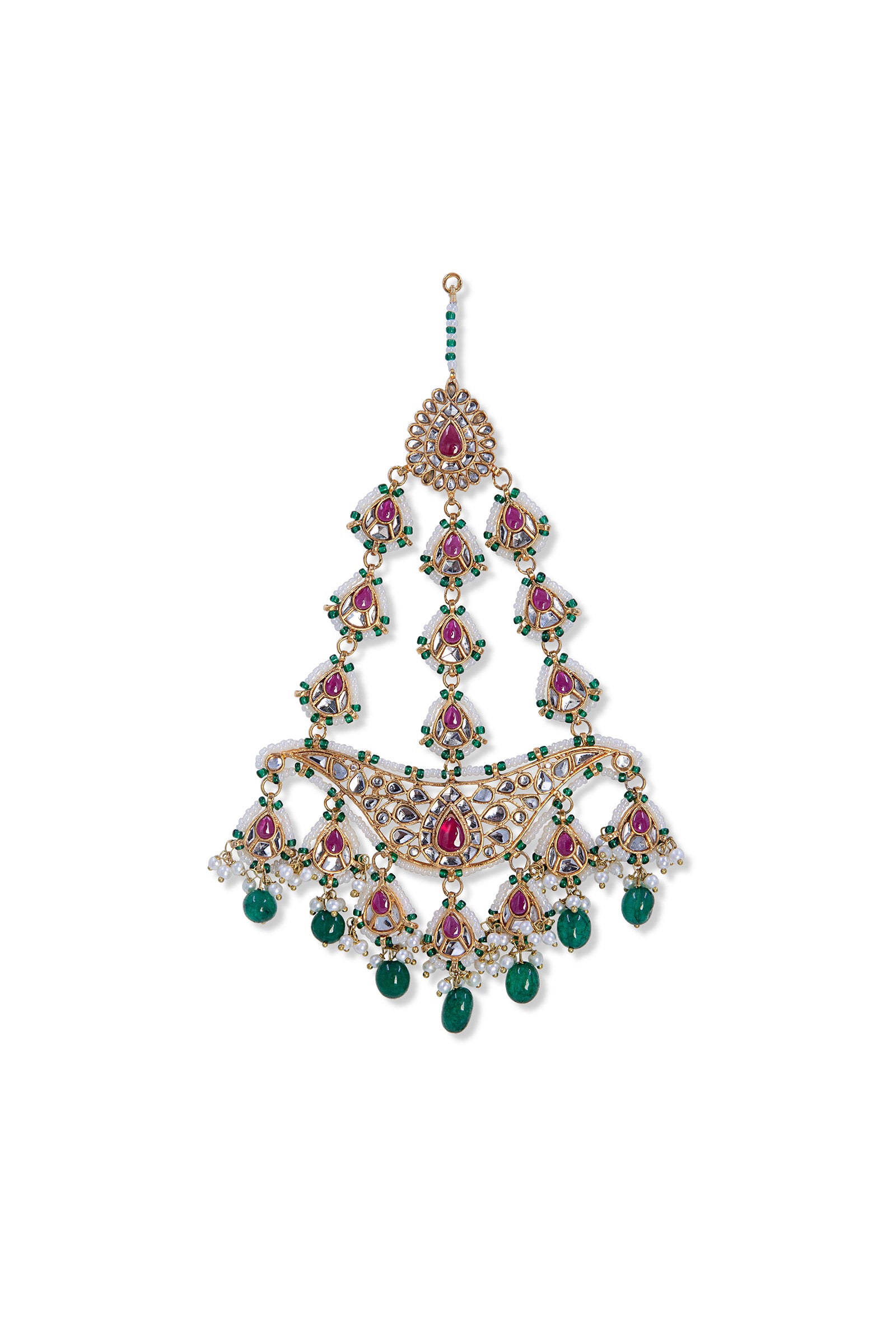 Materials: Handcut Glass, Chatham & Onyx Color: White, Pink Chatham, Green Onyx Metal: Alloy Finish: 21k Gold Plated Product Care: Wipe Clean