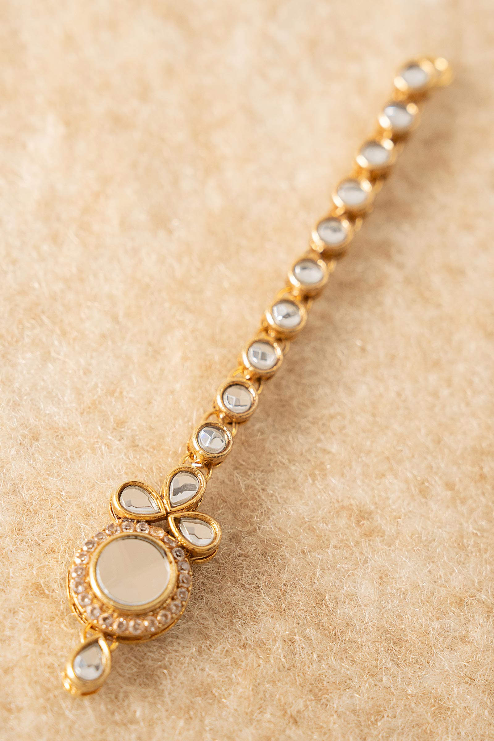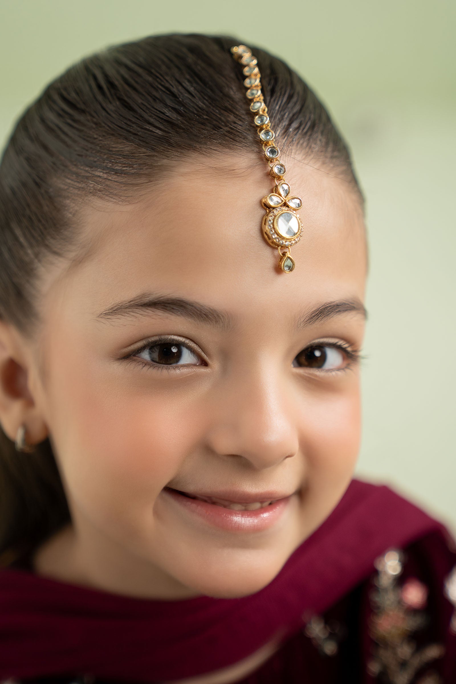 Let your little star shine bright with this delightful festive tikka, featuring shimmering white handcut glass and sparkling white zircons. A perfect blend of innocence and elegance, crafted to add a magical touch to every celebration. Finish: 21K Gold Plated Product Care: Wipe Clean