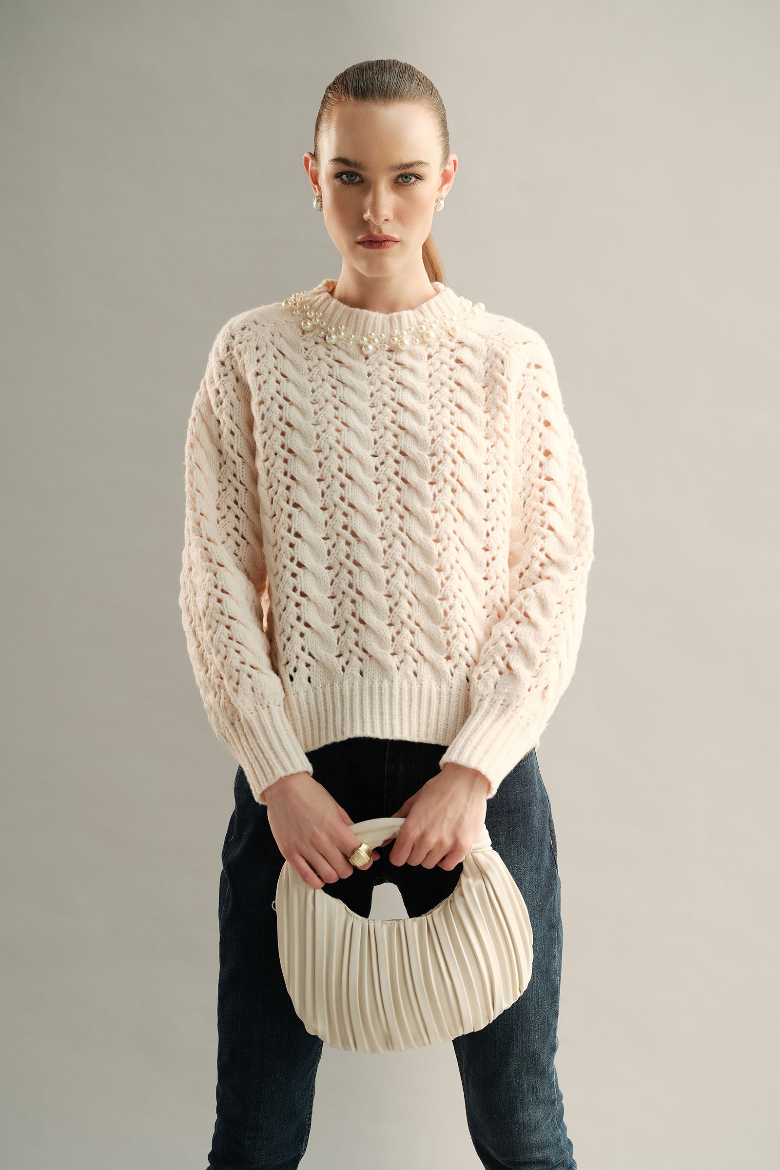 A polished stripe-embossed edition for a well-curated wardrobe. Featuring a zip closure that opens to spacious storage to keep all your essentials with you. Details: Hand Bag Adjustable metallic braided chain strap Tie-knot Handle drop Zip fastening Material: Leather Silver-tone hardware Interior Details: Single compartment One card slot Color: Black, Brown, Green, Mustard, Red, White & Beige Dimensions: 11”W X 7”H