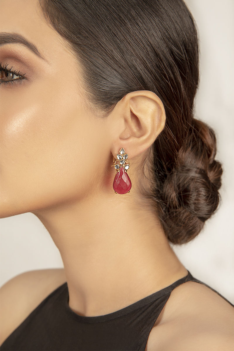 Handmade scarlet earstud completed with faux stone.