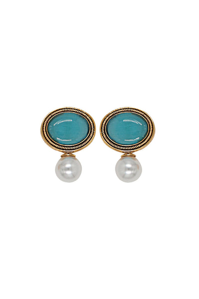 Handcut glass stone and filligree work around the stone along with beautiful shalper pearl.