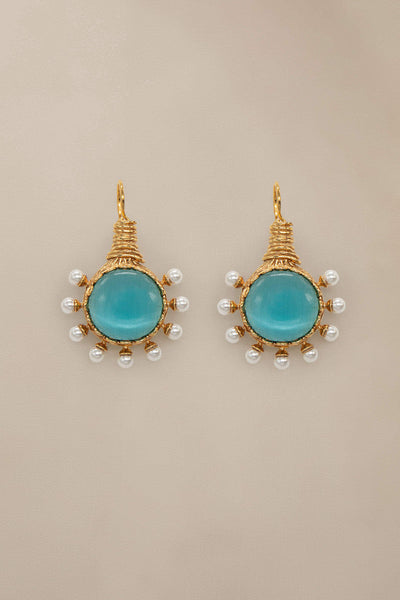 Blue & Brown cat's eye stone Drop Shalper Pearl