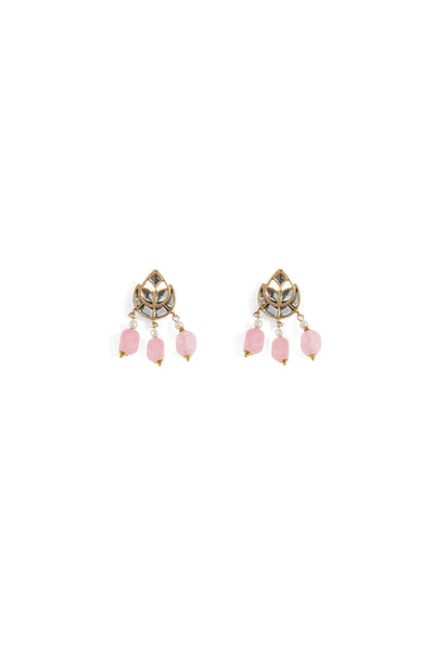 A pure reflection of statement artisan jewelry, these designer earrings have been handcrafted with handcut glass stones with pearl white, ruby red, emerald green and powder pink hanging stones in a 21K gold plated finish.