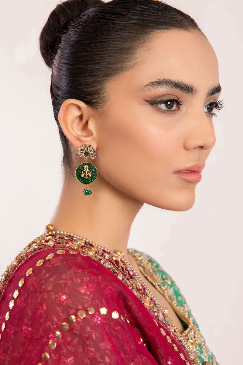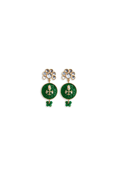 These stunning carved stones earrings with a statemental motif on top is sure to spice up your festive look. Available in two colors.