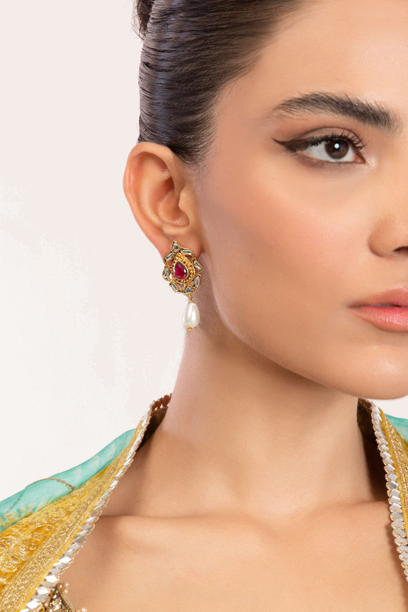 Ring a fusion touch to your traditional attire with our red and green onyx center stoned earrings with drop pearl that will surely make heads turn. Available in two colors.