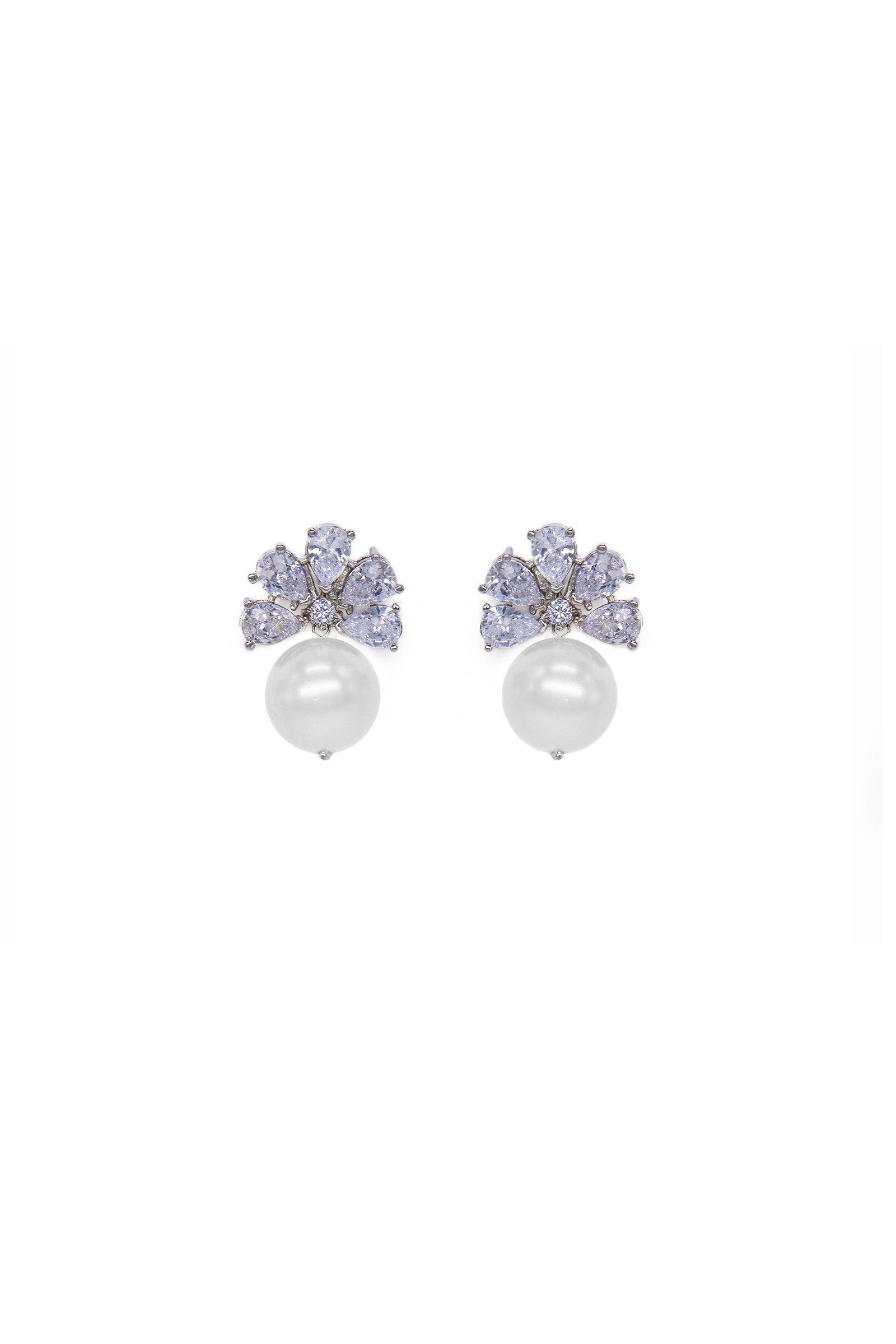 The perfect stud back with a silver pin attaches to a white zircon earring with an off-white round pearl perfect for everyday wear. Alloy metal
