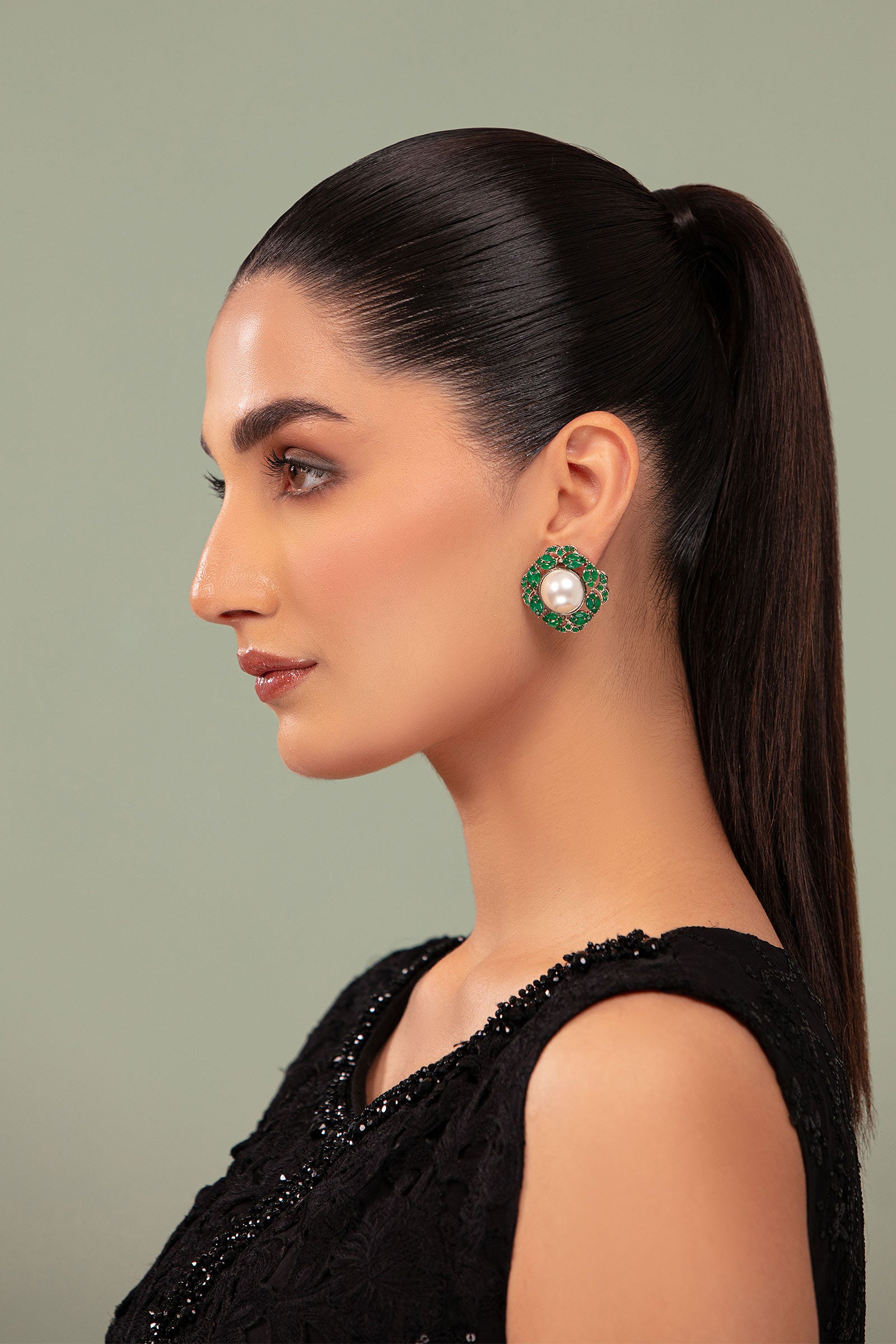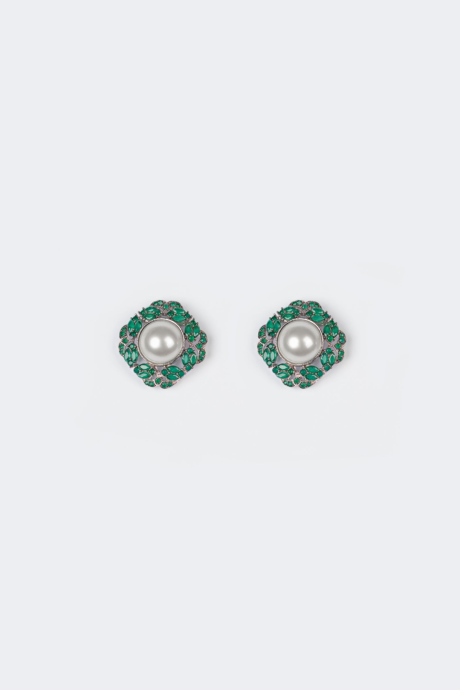 Materials: Onyx & Pearl Color: Green Onyx & White Metal: Alloy Finish: Silver Back Pin: Sterling Silver Stud Product Care: Wipe Clean