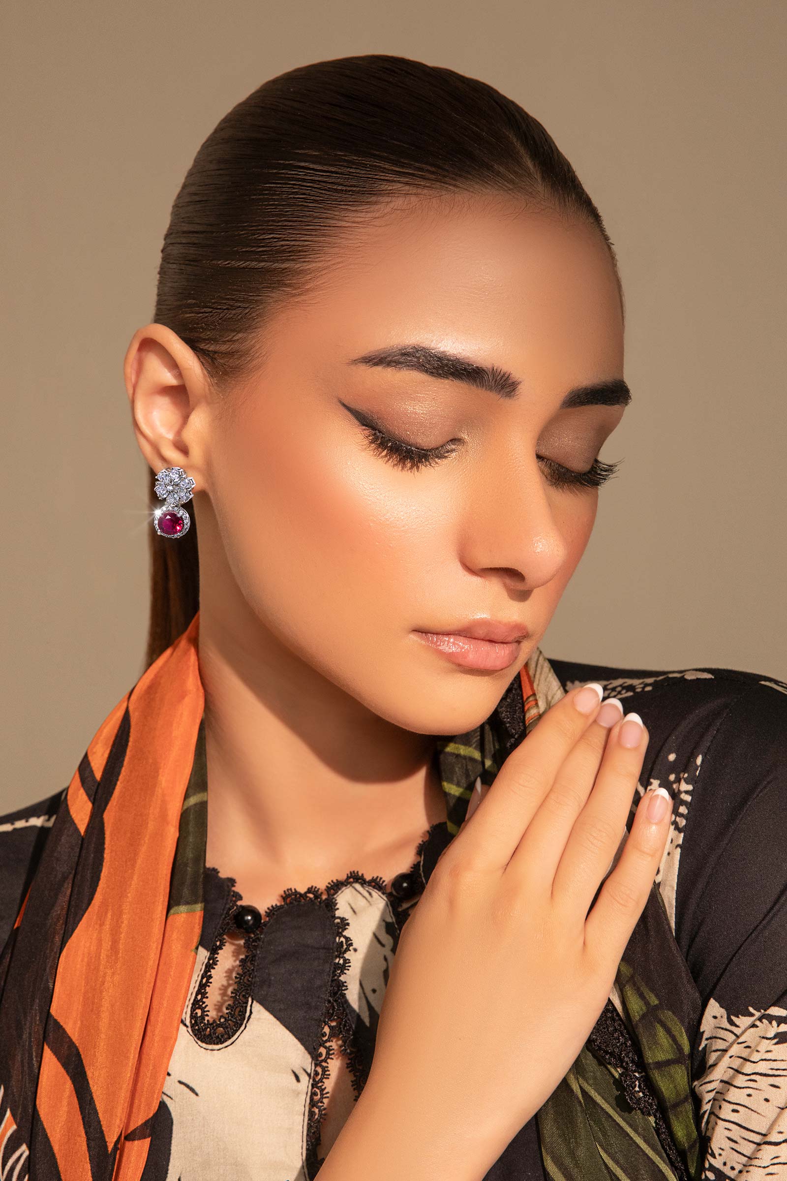 Materials: Zircons Color: Pink Rhodolite & White Metal: Alloy Finish: Silver Back Pin: Sterling Silver Stud Product Care: Wipe Clean