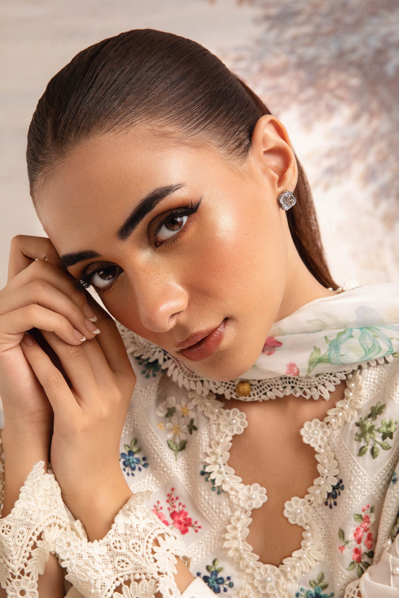 Materials: Zircons Color: Champagne & White Metal: Alloy Finish: Silver Back Pin: Sterling Silver Stud Product Care: Wipe Clean