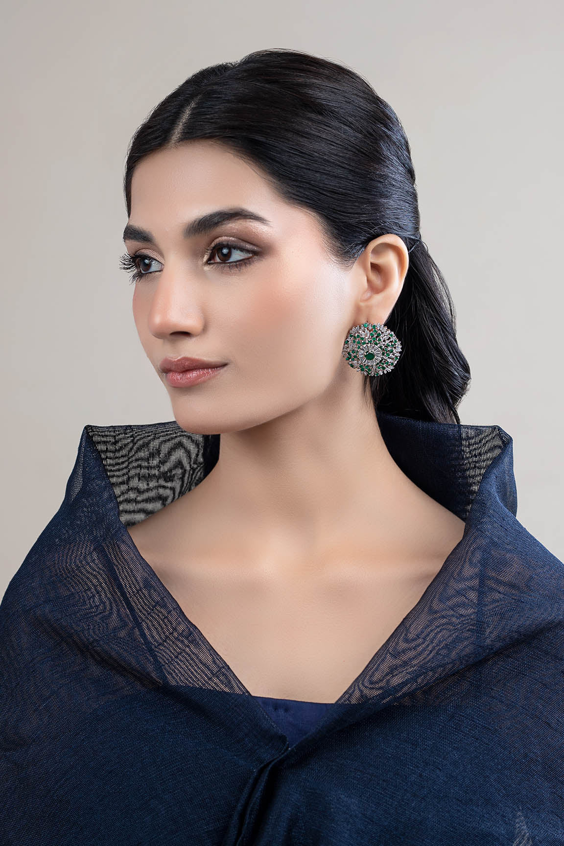 Brighten up your festivities with these perfect evening-wear three step stud earrings featuring green onyx stones intricately bejeweled with zircons in marquise and tapered shape, culminating in a silver finish that effortlessly steals the spotlight.DetailsMaterial: Alloy MetalFinish: Silver FinishingColor: Green Onyx