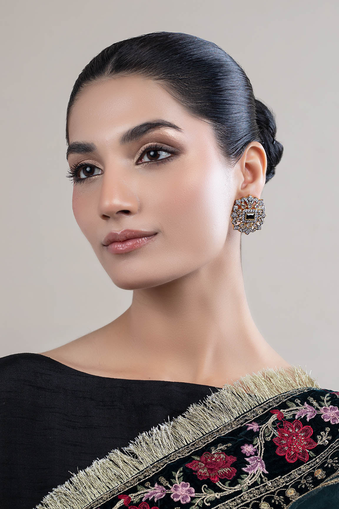 Look breathtaking with these stud earrings that unlock grace with a bold black onyx stone surrounded by lustrous zircons, sitting on a ganga jamni setting in a stunning 21K gold plated finish, making it an effortless choice to shine supreme.DetailsMaterial: Alloy MetalFinish: Silver FinishingColor: Black Onyx
