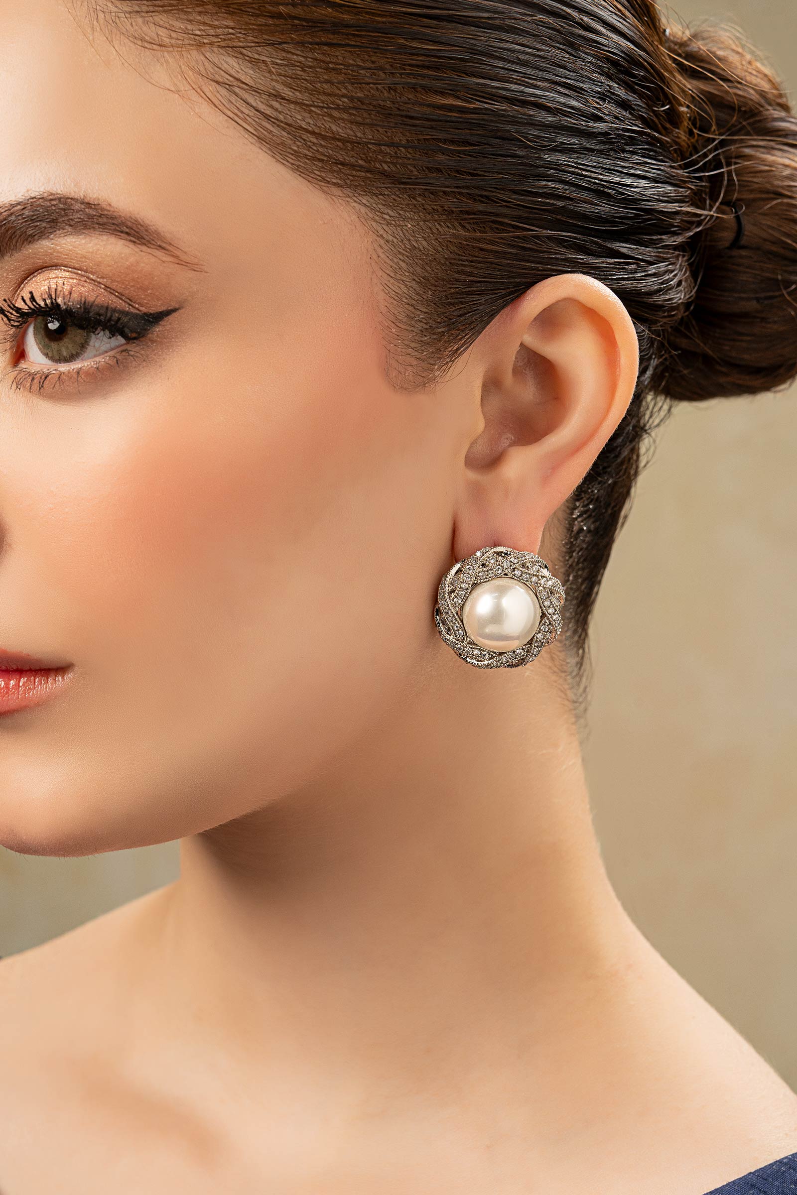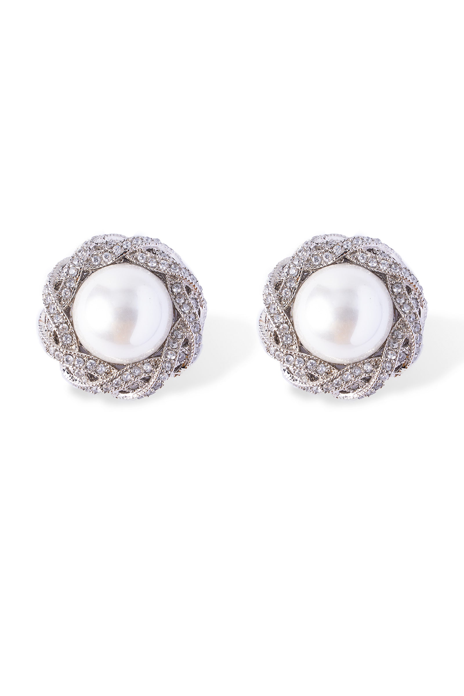 Grace, elegance, and charm combined to create these Studs! Adding the royal charm with a white half-round pearl in the center, and glistening white zircons all around it so you can add bling to your look. Finish: Silver Back Pin: Sterling Silver Stud Product Care: Wipe Clean
